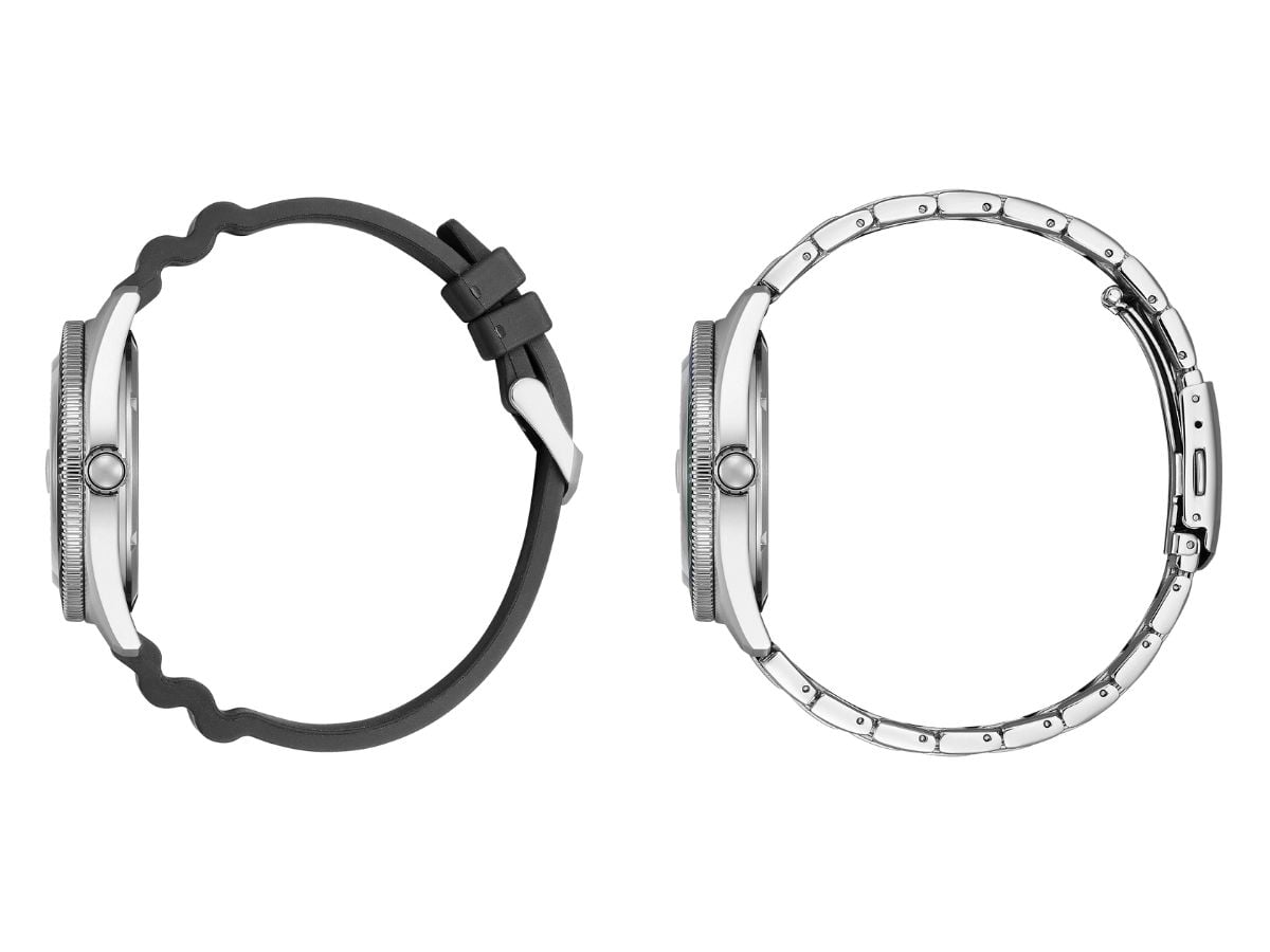 Citizen AW188 采用 J810-00M Eco-Drive 机芯,动力储备 240 天。这款指针式石英表有三个时针、分针和秒针,每月精确度保持在 15 秒以内。其他功能包括基本日期显示和 10 bar 防水。