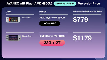最后,将有AIR Plus,配备Ryzen 7 6800U,32GB内存和2TB存储,售价1179美元。顺便说一下,AYA NEO将其称为Ryzen 7 6800U机型称为AIR Plus "高级版",而不只是AIR Plus。作为参考,Advance Version机型更重,并且拥有更快的LPDDR5-6400内存,而AMD Mendocino机型的LPDDR5-5500内存和Core i3-1215U的LPDDR5-5200内存。所有其他规格都是相同的。