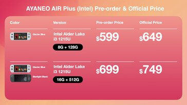 换句话说,AIR Plus的起价为549美元,而不是像该公司之前声称的那样低于300美元。之前声称的那样.这一定价只适用于Ryzen 3 7320UAPU、8GB内存和128GB存储的机型,16GB内存和512GB存储的机型定价为599美元。同时,酷睿i3-1215U将以同样的价格出售,但高内存版本将多花100美元。此外,AYA NEO已经为Ryzen 5 7520U设定了649美元的预购价格。Ryzen 5 7520U,与Ryzen 7 6800U预购价格为779美元,两者都有16GB内存和512GB存储空间。
