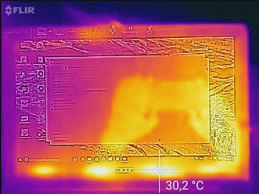(+) In idle usage, the average temperature for the upper side is 26.8 °C / 80 F, compared to the device average of 30.3 °C / 87 F.