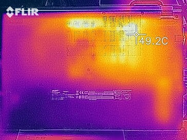 (+) In idle usage, the average temperature for the upper side is 24.9 °C / 77 F, compared to the device average of 29.5 °C / 85 F.