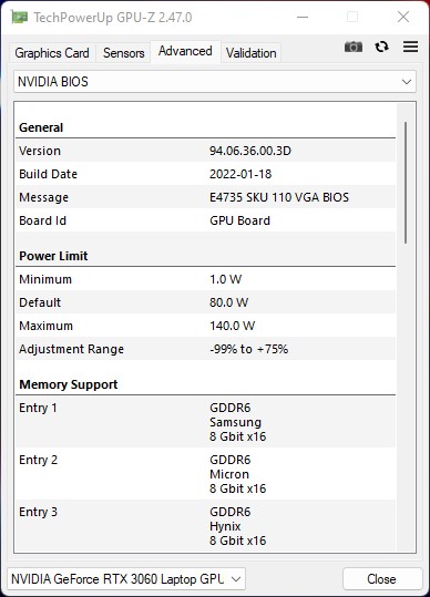 | Acer Nitro 5 AN517-55-738R GeForce RTX 3060 Laptop GPU, i7-12700H, Samsung PM9A1 MZVL2512HCJQ | Lenovo Legion 5 17ACH6H-82JY0003GE GeForce RTX 3060 Laptop GPU, R5 5600H, Samsung PM991a MZALQ512HBLU | Asus TUF Gaming F17 FX707Z-HX011W GeForce RTX 3060 Laptop GPU, i7-12700H, SK Hynix HFM001TD3JX013N | Acer Nitro 5 AN517-41-R5Z7 GeForce RTX 3070 Laptop GPU, R7 5800H, SK Hynix BC711 1TB HFM001TD3JX016N | Schenker XMG Core 17 (Early 2021) GeForce RTX 3060 Laptop GPU, i7-10870H, Samsung SSD 970 EVO Plus 1TB | MSI Katana GF76 11UE GeForce RTX 3060 Laptop GPU, i7-11800H, Kingston OM8PCP3512F-AB | |