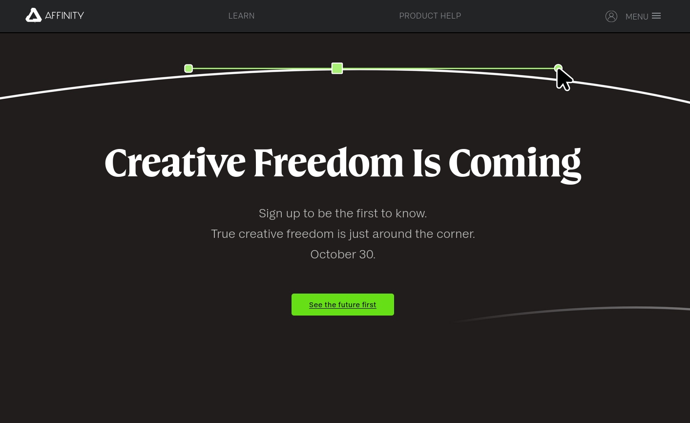 Serif 的 Affinity Photo 和 Designer 一直是 Photoshop 和 Illustrator 等软件的最佳替代品,适合那些愿意支付一次性永久许可费而不是持续订阅费的用户。但最近,Serif 关闭了 Affinity 软件商店,并在的登陆页面上换上了 "真正的自由 "字样。换成了"真正的创作自由指日可待"的信息以及 10 月 30 日的发布日期和公告时事通讯的链接。