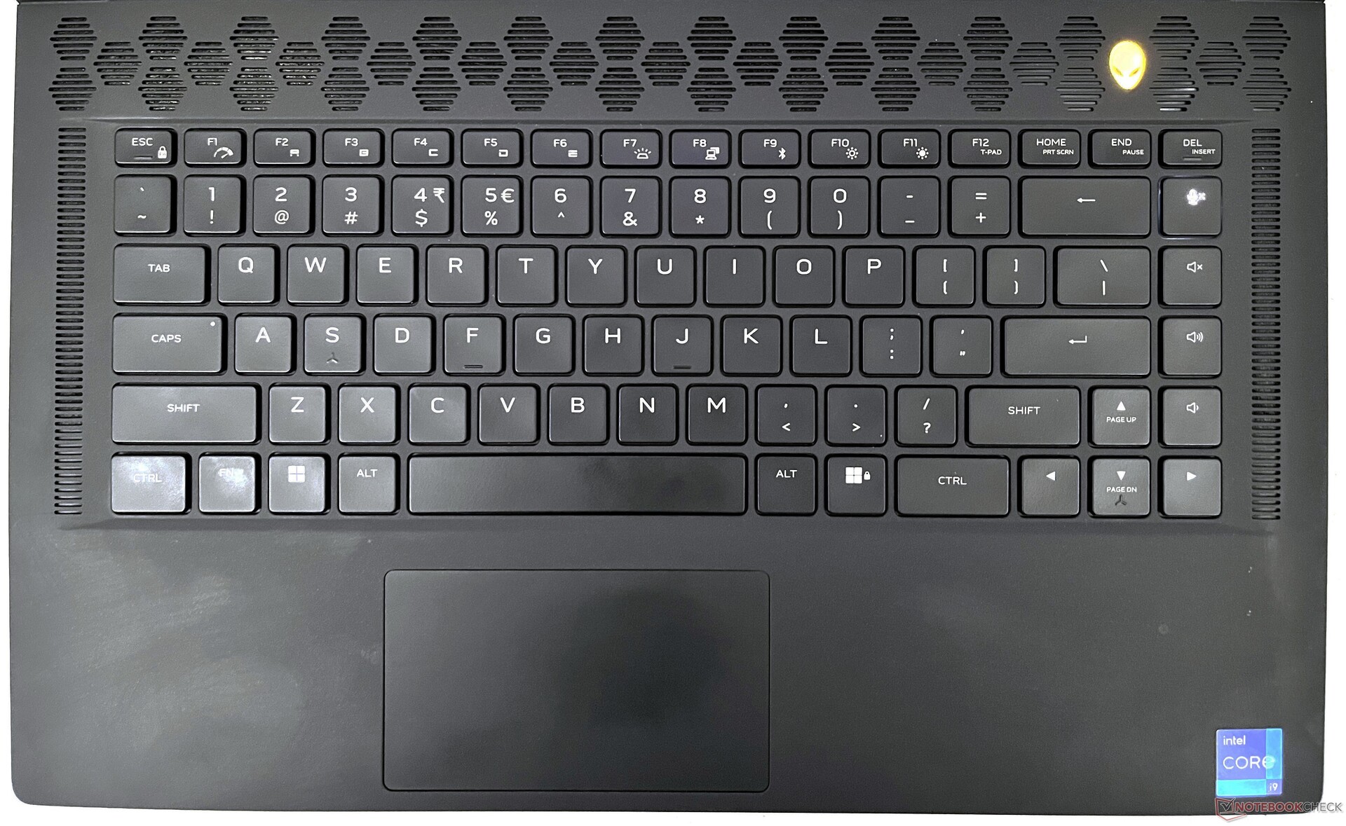 键盘与x15 R1相比没有变化。戴尔采用了Alienware X系列薄型键盘,键程为1.5毫米,N键翻转,并采用了防鬼怪技术。由于机身较薄,所以没有机械键。