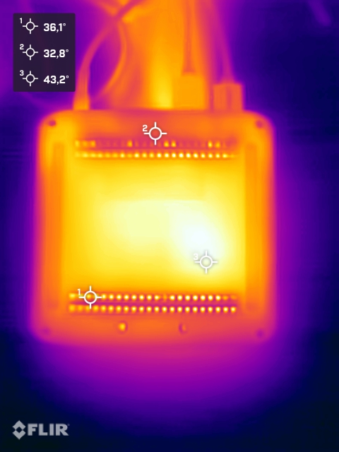 (-) The bottom heats up to a maximum of 46.5 °C / 116 F, compared to the average of 36.3 °C / 97 F