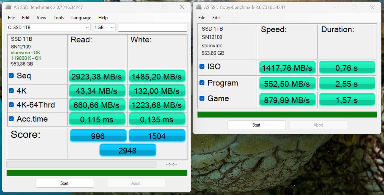 Alliwava GH8 配备了 1 TB 固态硬盘,制造商未详。由于通过 PCIe 3.0 x4 连接,它并不是速度最快的机型之一,在性能方面处于比较领域的低端。不过,其性能足以满足日常任务的需要,而且固态硬盘在连续负载的情况下也能稳定工作。