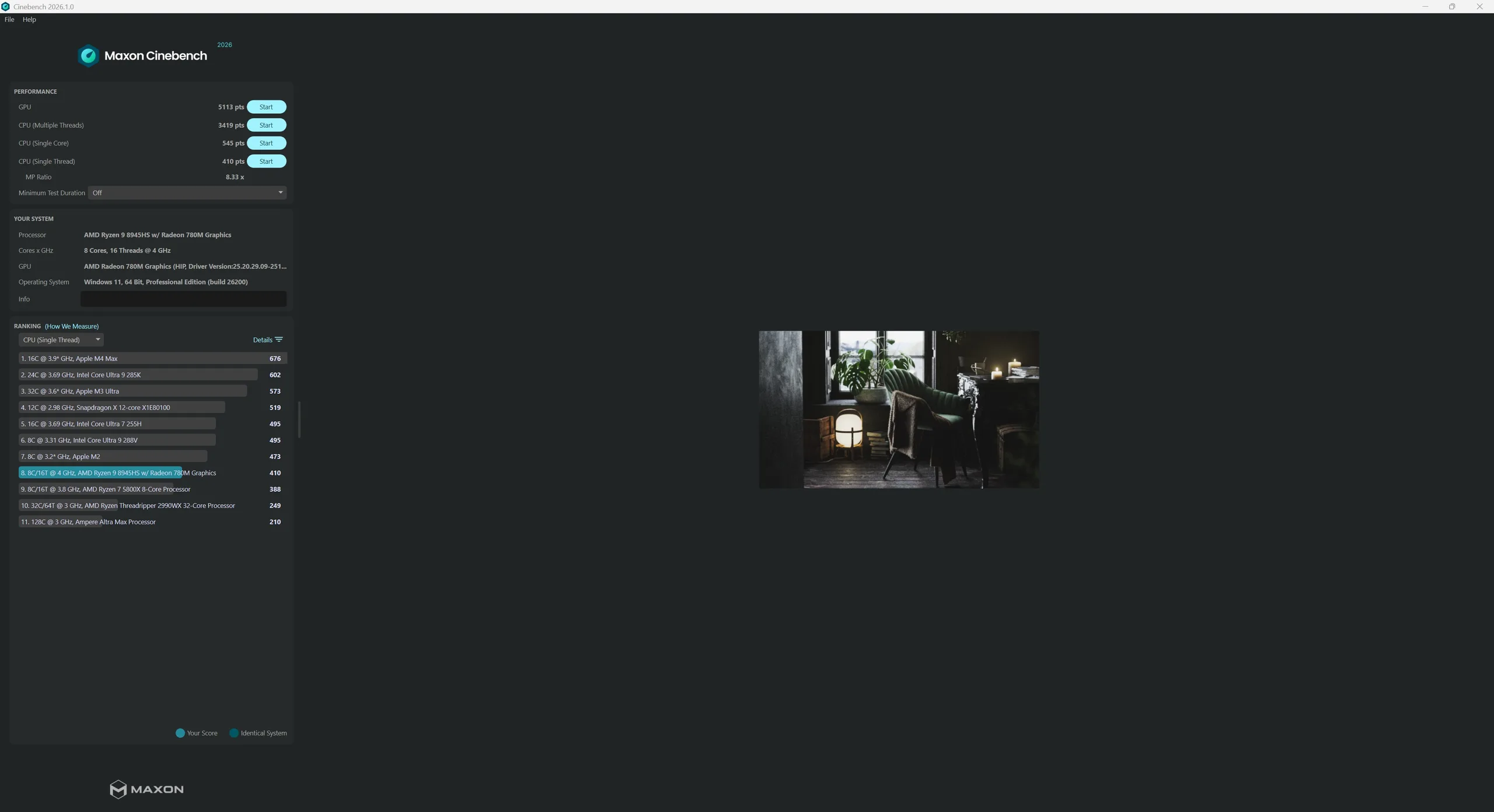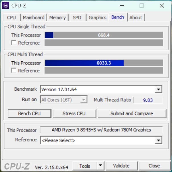 搭载 AMD Ryzen 9 8945HS(Zen 4,8 核 16 线程)的 Alliwava GH8 整体运算能力较强,在目前的迷你 PC 中属于性能强劲的中端产品。该 SoC 的短期功耗最高可达 65 瓦左右,但在持续负载情况下功耗稳定在 55 瓦左右。不过,在直接对比中,我们的测试样品输给了 Geekom A8,因为后者配备的 AMD Ryzen 7 8745HS应该会弱一些。