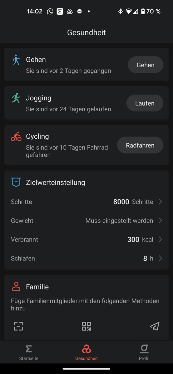 有些数据只有在锻炼结束后才会在智能手表上给出。过去的锻炼也可以在那里查看。同样,Zepp应用程序也会显示收集的数据。此外,完成的距离在地图上也是可视化的。完成的路线可以导出,路线也可以导入并进行训练。