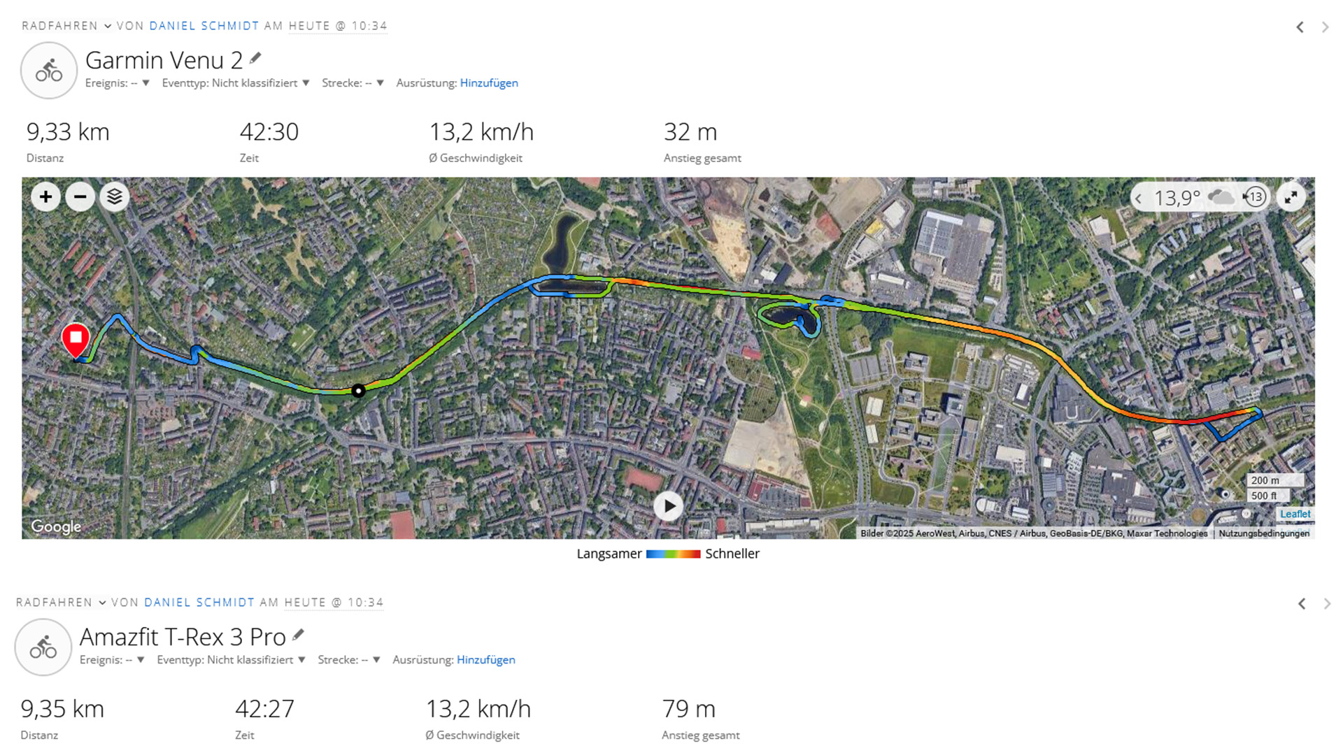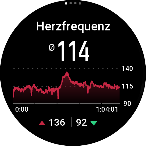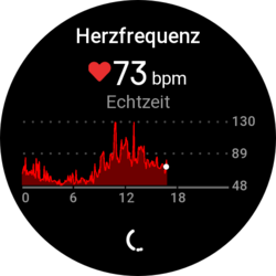 在心率方面,这款智能手表与 Polar H120 胸带进行了比较,作为参考值,两者的测量结果基本一致。静息心率的测量结果完全一致。中等心率的差异较大。这里的测量结果最多比参考值低 10 个节拍。这导致总体偏差为 2.6%,动态曲线也反映了这一点。