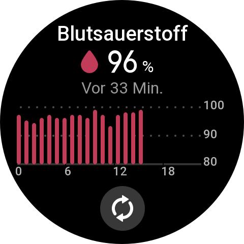 我们测试的 48 毫米版本配备了 1.5 英寸 AMOLED 显示屏。显示像素为 480 x 480,像素密度为 322 ppi。44 毫米版本的像素密度甚至略高,达到 353 PPI。这是因为安装在这里的 AMOLED 面板在 1.32 英寸对角线上显示 466 x 466 像素。