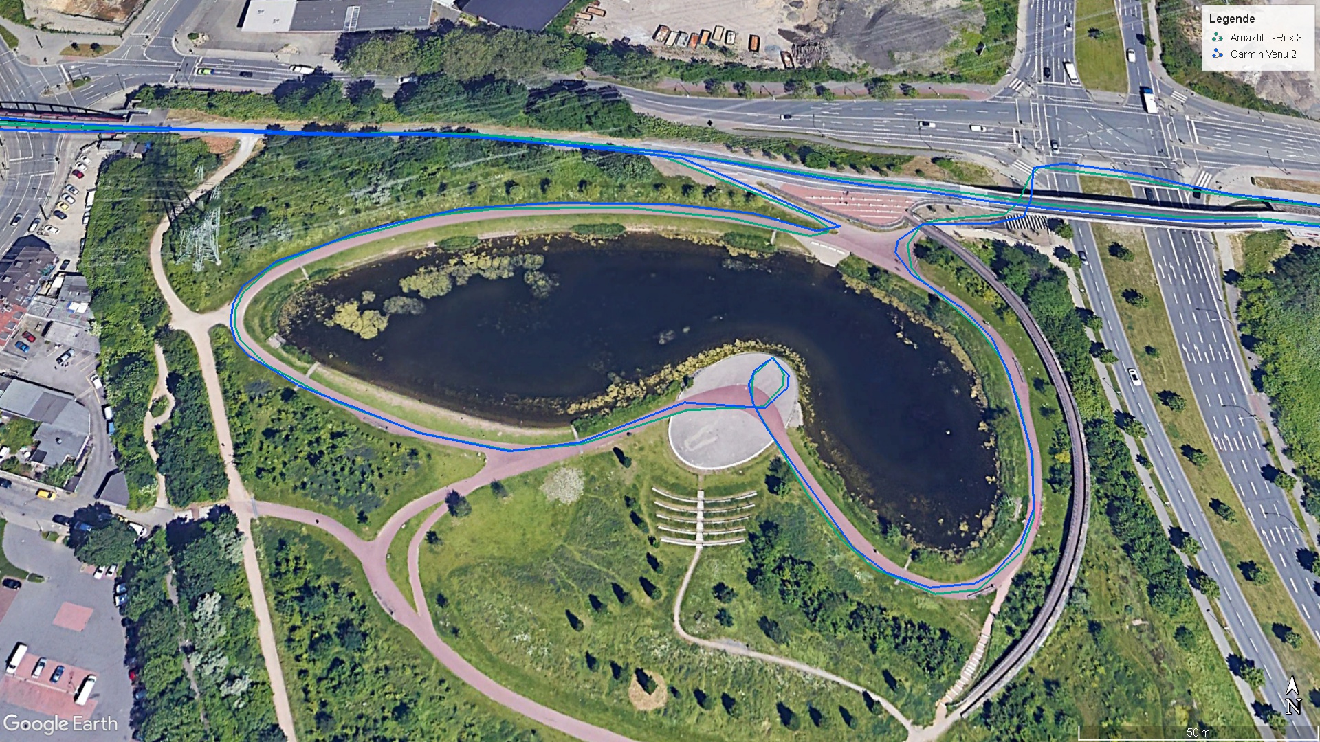 T-Rex 3 是该系列中第一款使用圆极化 GNSS 天线的产品,我们已经从 Amazfit Active.与 Garmin Venu 2定位精度非常高。Garmin 手表只是在建筑物之间稍稍领先。