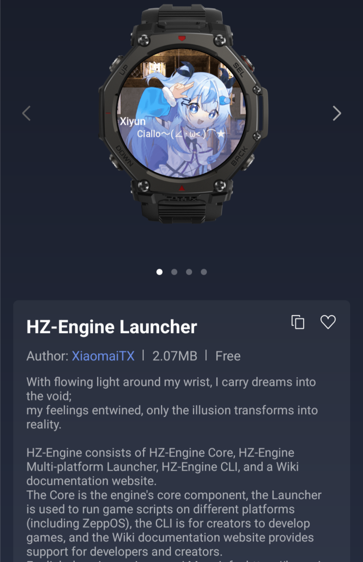 根据 Zepp OS 每周下载量前 50 的应用程序排行榜,最受欢迎的新应用程序是 HZ-Engine Launcher。该启动器可用于在 Zepp OS 上运行视觉小说引擎的游戏脚本。近期新增的其他热门应用包括 Telegram 客户端 tgwatch 和 CaferoChat,后者被称为 "极简智能手表聊天应用"。