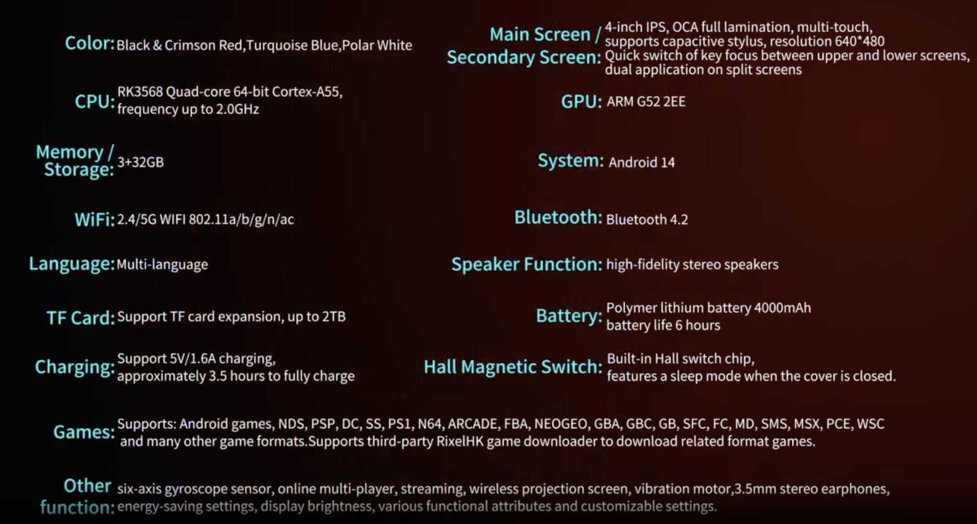 此外,上市信息还显示,RG DS 可运行Android 14,支持蓝牙和 Wi-Fi 连接,但起售价为 108.99 美元,最终将达到 114.99 美元。不过,正如之前所指出的,RG DS 的早期发售报价可能会跌破 100 美元。