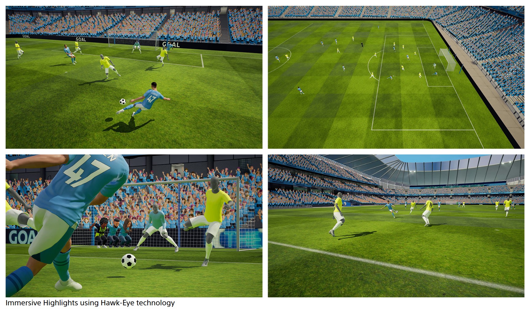 曼城的主场伊蒂哈德球场已在虚拟空间中忠实再现,球迷可以随时与自己的化身一起参观。在虚拟球场,球迷们可以享受只有在虚拟空间中才能实现的身临其境的虚拟内容,例如 "身临其境集锦"(Immersive Highlights),它允许球迷从任何视角自由观看 3DCG 中以往主场比赛的集锦。