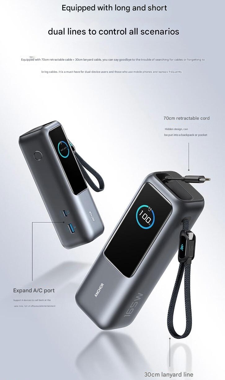Anker 在中国推出了全新的Zolo Power Bank(25K,165W,双内置 USB-C 线缆)。在中国上市。该配件 今年多次在 Reddit 上泄露。预计将在全球其他市场推出。