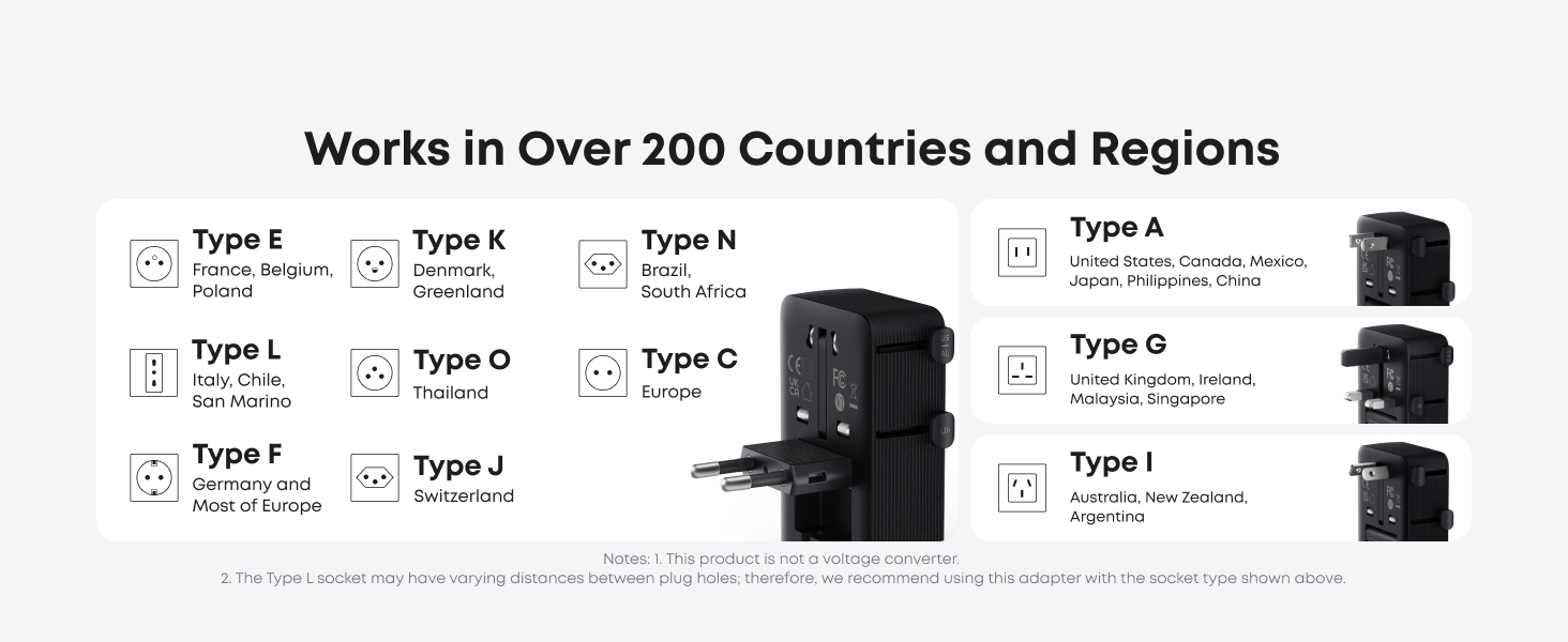Nano 旅行适配器可在英国、法国和澳大利亚等 200 多个国家使用,这要归功于一系列可伸缩和折叠的插针,可用于 A 型、I 型、G 型和 C 型插头。Anker 提醒潜在客户,该设备不能转换电压。据说,2 针对 2 针的设置可防止电击,还具有温度控制安全功能。