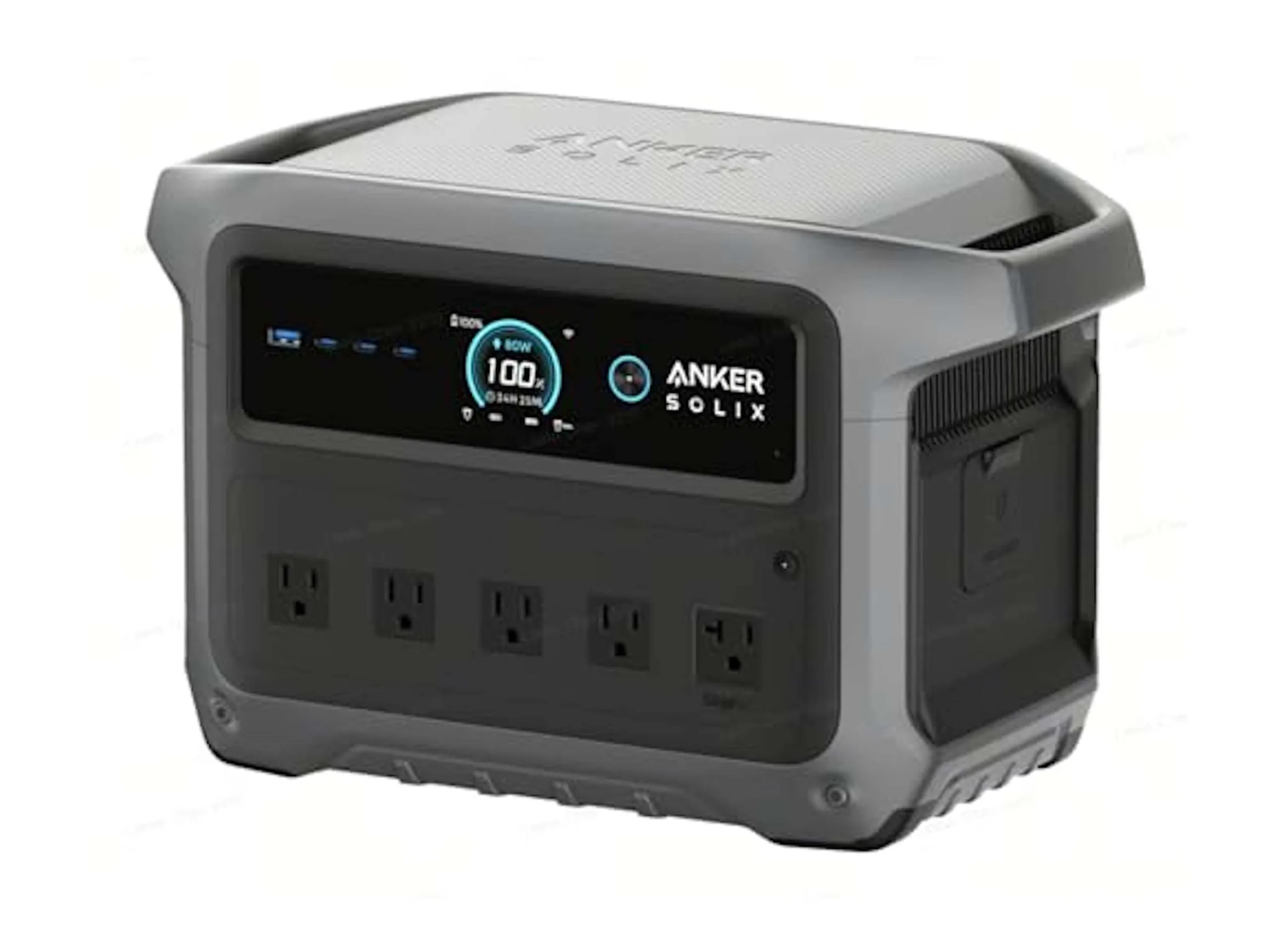 电池容量为 1,024 Wh,据说在循环使用 4,000 次后,电池单元至少还能保持原有容量的 80%。共有五个插座,每个插座的输出功率最高可达 1,800 瓦;最大总负载为 2,000 瓦,在 SurgePad 模式下为 2,400 瓦。在旁路模式下,最多可输出 1,440 瓦。太阳能充电最高可达 600 瓦,市电充电最高可达 1200 瓦。有两个 USB-C 端口和一个 USB-A 端口,每个端口的最大输出功率为 140 瓦。可与 Anker 应用程序兼容,电站还可充当 UPS。