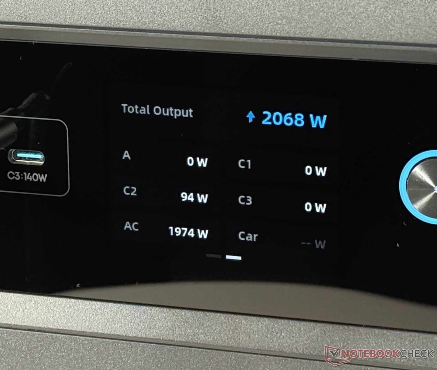 交流放电的效率值则不尽如人意。在电压为 230 V、持续负载约 250 W 的情况下,我们设法从电站中获得了 850 Wh(83%)的电量,直到电站在剩余 1% 电量时退出。在交流电消耗波动的情况下,该值甚至更低。另一方面,通过 USB 或汽车插座进行直流充电时,电站的工作效率更高,因为此时不需要逆变器。