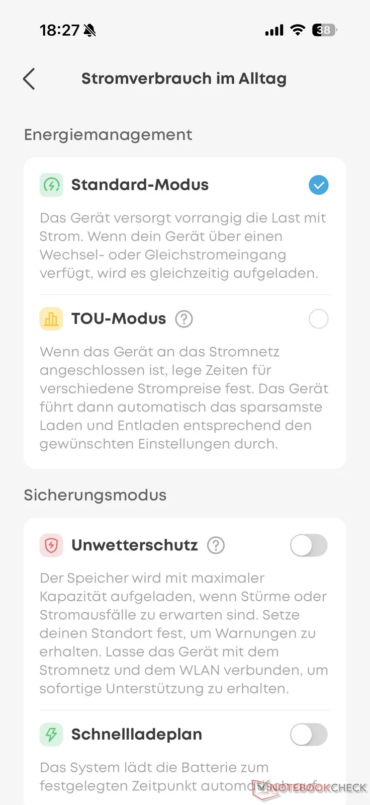 在测试中,连接的建立没有出现任何问题,因此很快就完成了设置。除了开关各种连接和显示屏外,Anker 应用程序还允许您选择不同的模式。例如,在 TOU 模式下,电站可以在更有利的非高峰时段自动充电。不过,这里只能存储不同的时间,不能直接连接到动态电价(如 Anker Solar 的阳台电站)。 Anker Solix 的阳台电站).