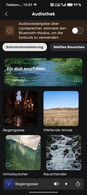 根据模式的不同,每次充电的电池寿命在 5 到 8 小时之间。在不带蓝牙的纯睡眠声音模式下,耳机的运行时间最长,因为不需要串流。在有 ANC 和蓝牙的情况下,播放时间会略有减少,但仍足以满足一个正常夜晚的需求。在我们的测试中,这意味着经过一个晚上(约 8 小时)后,耳机仍有 20% 的剩余电量。