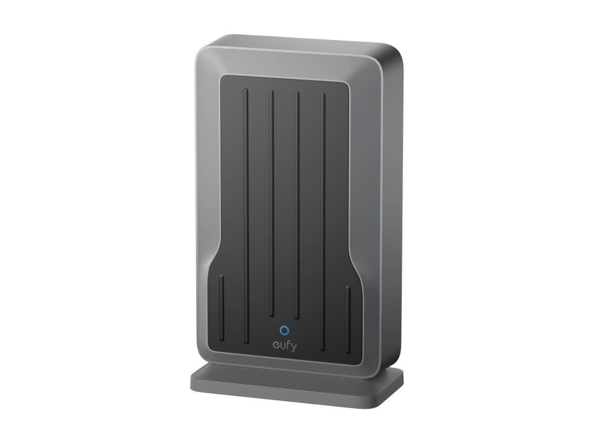 Eufy 的 Wi-Fi 模块可以放在桌面上,也可以安装在墙上。这款来自 Anker 子品牌的配件也被称为 eufy WLAN 模块,型号为 T8709。它采用金属深灰色外观,尺寸为 3.18 x 1.73 x 5.53 英寸(约 80.8 x 43.9 x 140.5 毫米)。