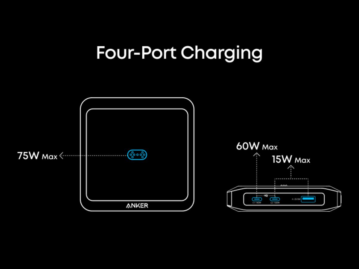 Anker 的 Prime 充电底座可同时为四台设备充电,并支持直通充电。主 150W pogo pin 输出位于基站顶部,一侧有 140W USB-C、100W USB-C 和 22.5W USB-A 端口。该配件的其他功能还包括动态充电状态照明和通过该品牌的智能手机应用程序进行远程充电监控。它的尺寸为 103 x 103 x 23 毫米(约合 4.1 x 4.1 x 0.9 英寸),重约 350 克(约合 12.35 盎司)。