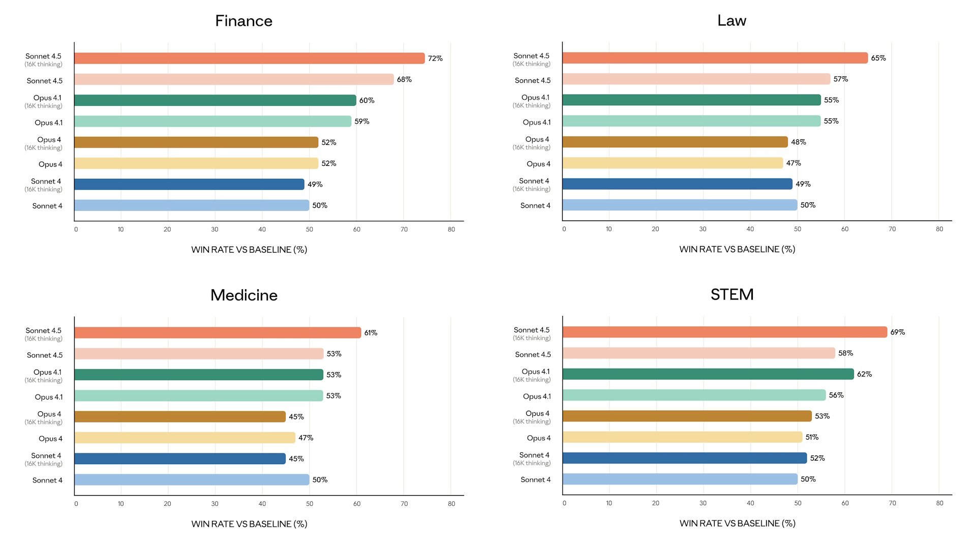 人工智能能力的提高使其在回答金融、法律、医疗和 STEM 领域的提示时比 Anthropic 之前的模型更胜一筹,但在回答这些类型的提示时,Claude Sonnet 4.5 只能获得 C 到 D 的分数。在MMMU 基准测试中,它在视觉推理任务中的表现也不如其他人工智能模型。测试中,它在视觉推理任务中的表现也比其他人工智能模型差。