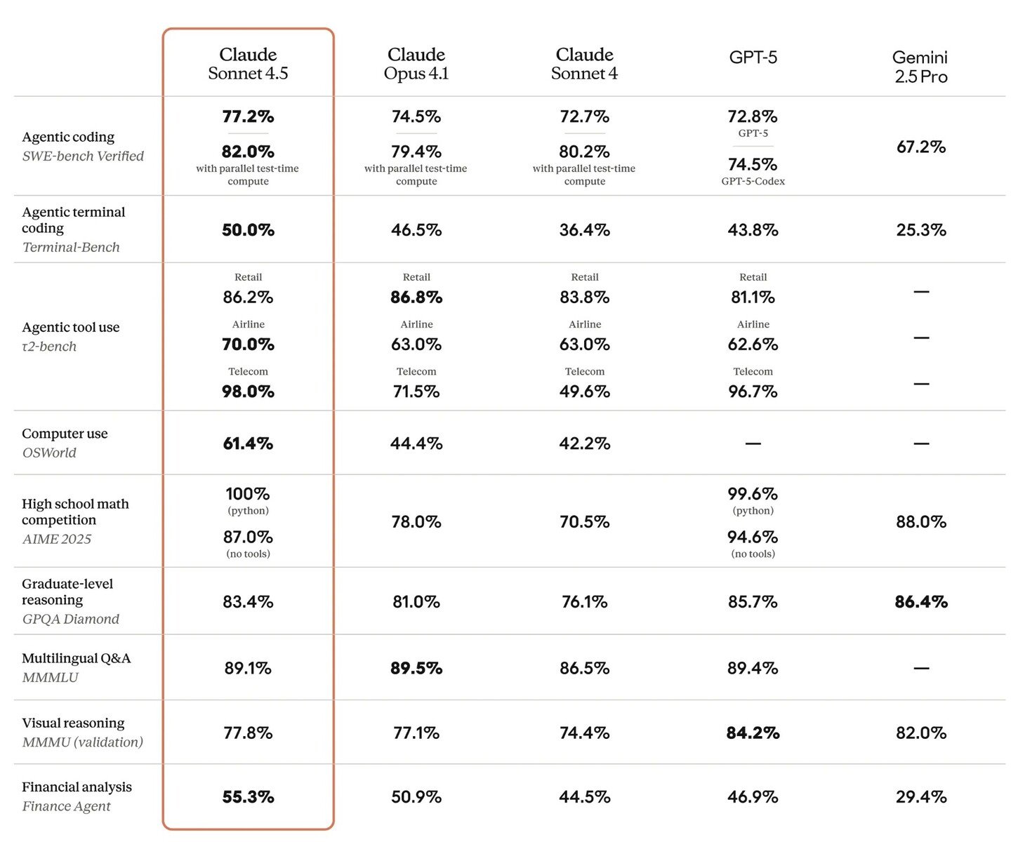 Sonnet 4.5 在几个主要的人工智能编码基准测试中表现出色,包括SWE-bench和Terminal-Bench.从其领先的OSWorld 基准测试结果中可以看出,人工智能使用计算机工具自主完成任务的能力得到了提高。结果可以看出,人工智能使用计算机工具自主完成任务的能力得到了提高,这使它能够https://www.youtube.com/watch?v=PnX30ZXxKco的克隆网站。