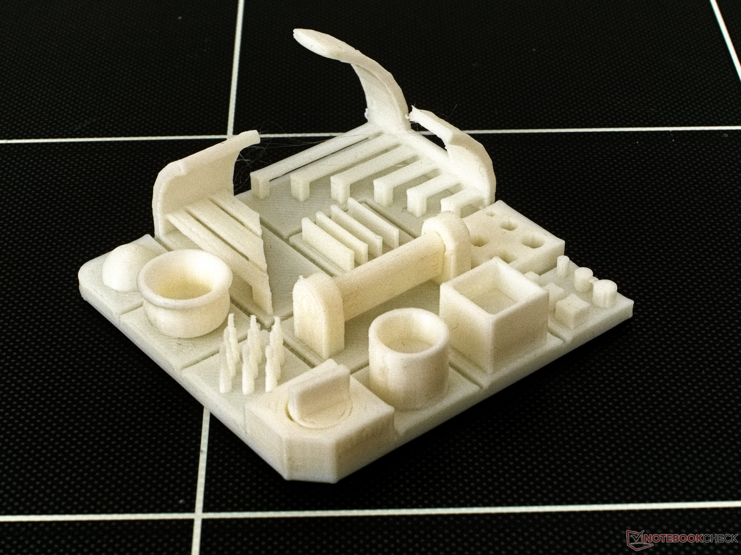 强有力的结果使人对该设备的悬空打印能力产生了良好的印象。即使在70°的角度,也没有明显的问题。有一些串线和斑点的迹象,但这些都非常有限。即使在薄壁之间和小针头之间的空间,也几乎看不出塑料串。最后,印刷的闸门和旋转的旋钮被发现是可移动的,即使在它们中的任何一个上打碎小的、融合的塑料股有些困难。