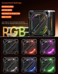 从外观上看,Aoostar GOD77 绝对吸引眼球:加上 RGB 灯光,这款迷你电脑在人群中脱颖而出,具有明显的识别价值。如果您不喜欢彩色灯光,也可以将其关闭。我们喜欢手动控制配色方案,因为这意味着系统不会被不必要的问题软件所累。一个积极的亮点是良好的连接性,包括 USB4。