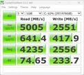 我们的测试样本基于最小配置,因此只有 512 GB SSD。不过,安装的是 PCIe 4.0 型号,因此取得了不错的结果。不过,从连续负载情况中可以看出,数值并不十分稳定。过不了多久,我们就会发现性能明显下降。虽然 Aoostar 在底部安装了一个小风扇,但在长时间负载的情况下还是无法避免性能下降。此外,如果要安装第二个大容量存储设备(2.5 英寸格式),风扇必须让路。