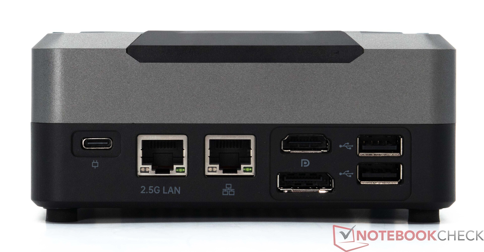 Aoostar GOD77 的外部接口非常丰富,分布在正面和背面。一共有五个 USB 接口,其中正面的 Type-C 接口与 USB4 是最先进的接口。这样就可以使用外置显卡等。在测试中,我们将结合 GPD G1(配备 AMD Radeon RX 7600M XT 的 eGPU)的性能。屏幕可以通过 HDMI、DisplayPort 或 USB-C 连接。甚至可以实现 144 Hz 的 4K,这在目前许多微型电脑中还不是标准配置。