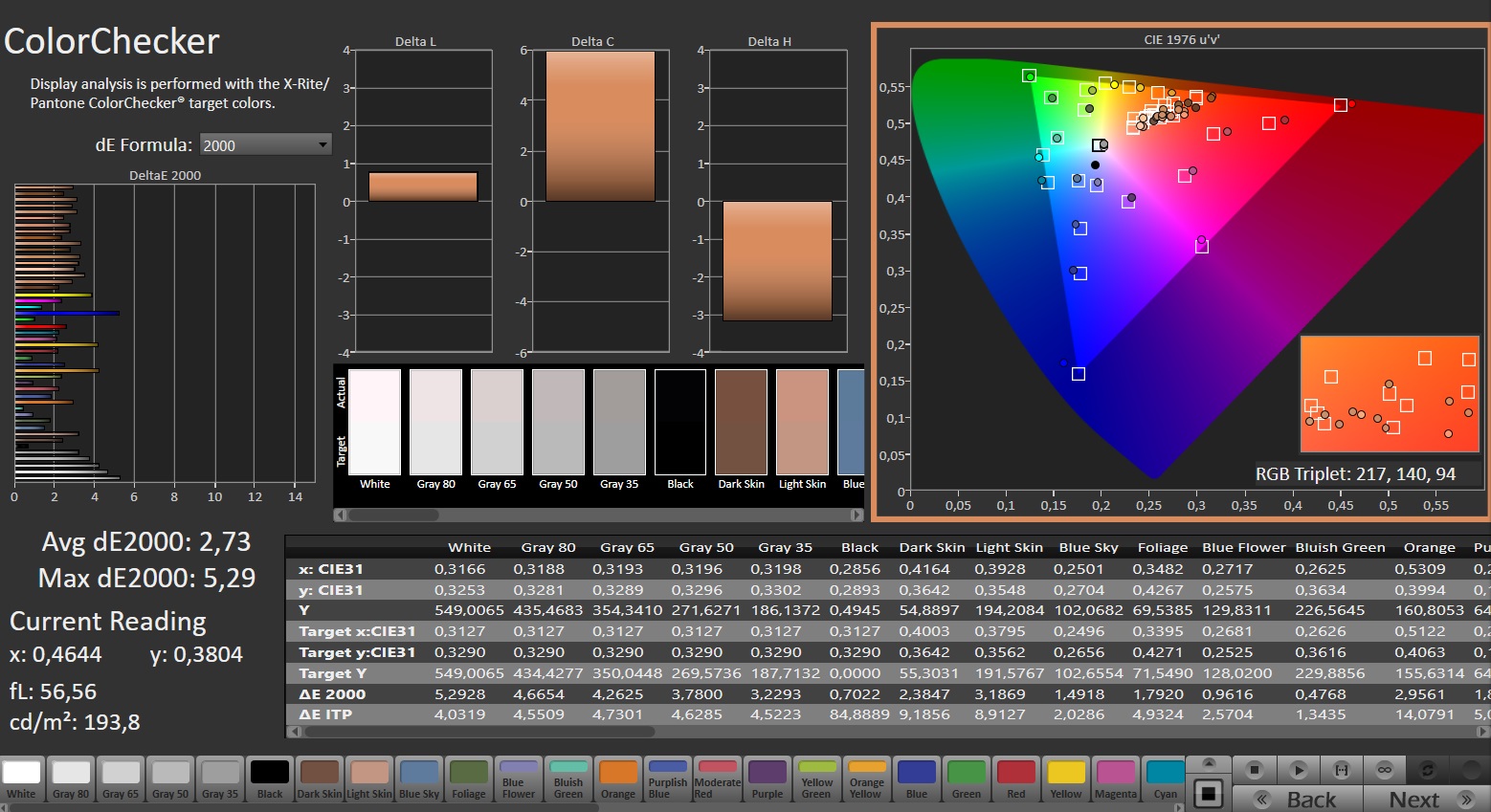 ΔE ColorChecker Calman: 2.73 | ∀{0.5-29.43 Ø4.78}