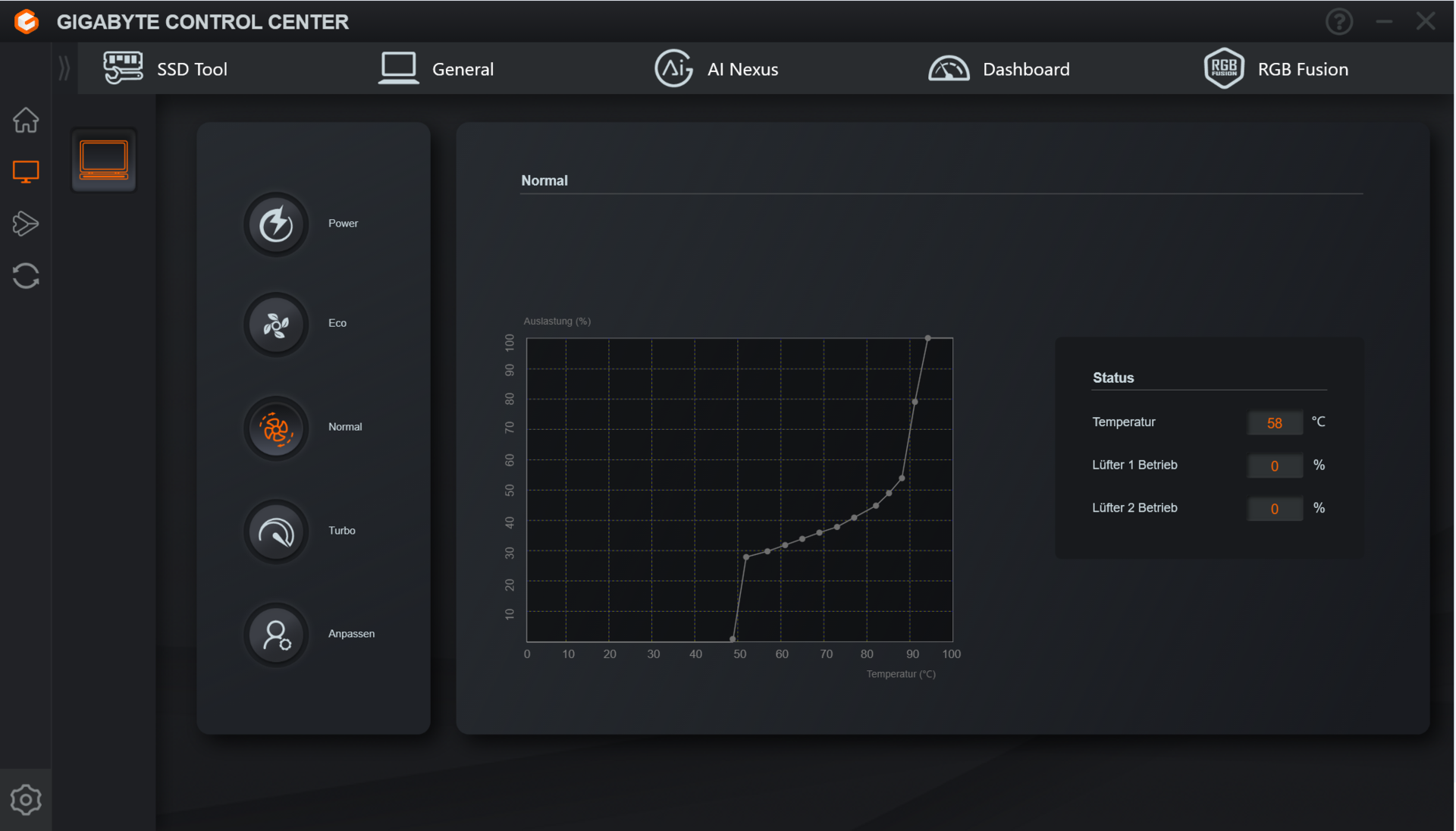 压力测试和 Witcher 3测试只导致笔记本电脑稍微发热。在某些情况下,我们测得的数值在 40 摄氏度上下。在日常使用中(办公、上网),数值基本保持在绿色区域,但高于平均值。