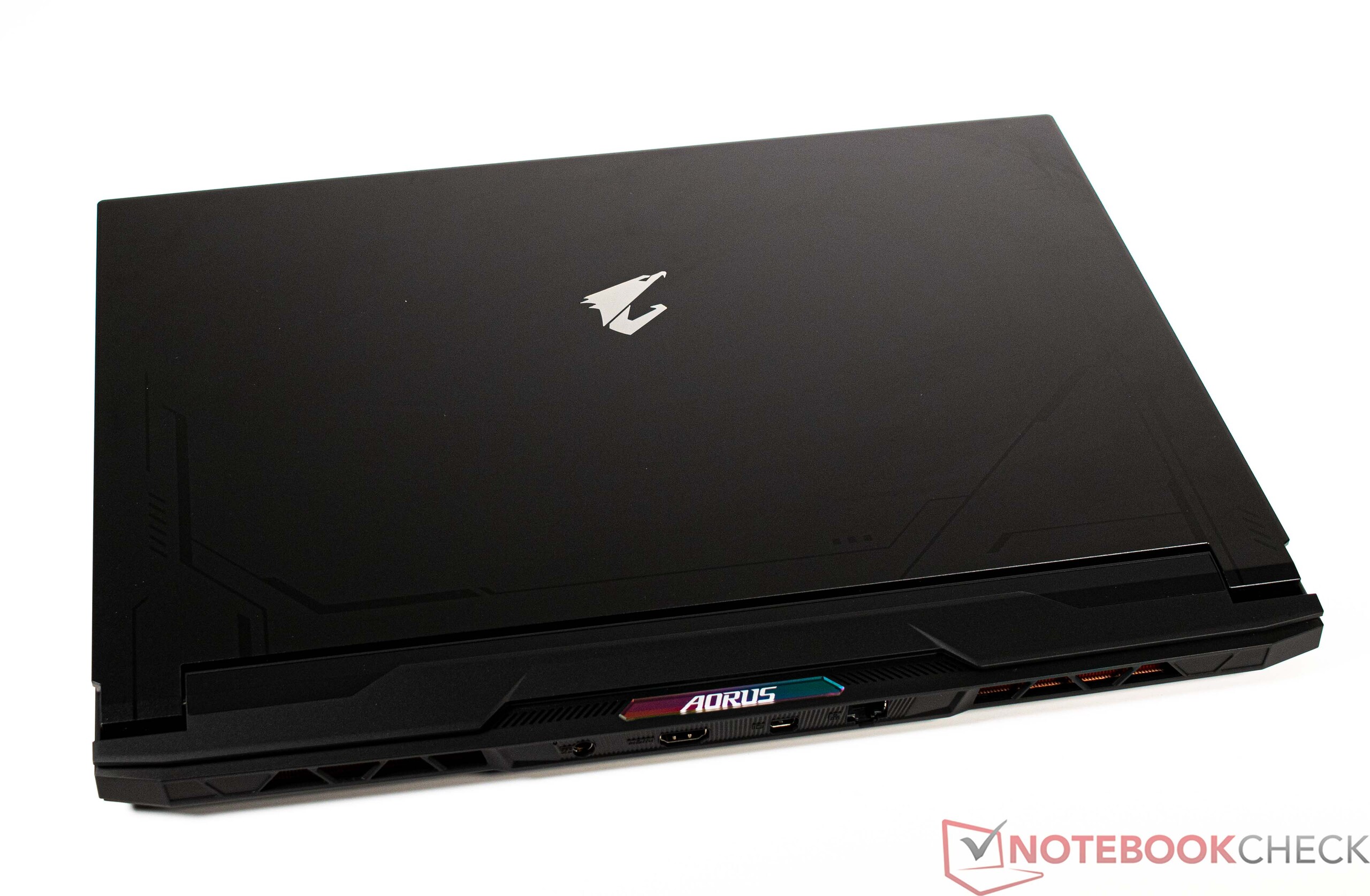 唯一的颜色元素是在背面以发光的Aorus字母形式出现。显示屏盖上还有一个银色的Aorus标志,这打破了完全黑色设备的单调性。