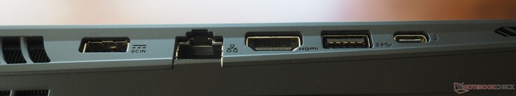 在连接方面,技嘉笔记本电脑确实有过人之处。两个 Thunderbolt 端口(一个 v4 端口和一个 v5 端口)带有 DisplayPort 和 Power Delivery 功能,别无他求。此外,还有三个符合 3.2 Gen2 标准的经典 USB-A 端口。此外,还有一个音频接口、一个 HDMI 2.1 输出端口和一个功能齐全的 SD 读卡器。一个 2.5 GBit LAN 端口可处理有线网络。
