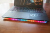 技嘉 18 英寸笔记本电脑的坚固外壳仅限于塑料材质,但这并不一定会立即引起注意。它的制造质量很好,但并不完美(例如,A 盖的制造工艺可以更好一些)。喜欢奢华照明的用户可以期待正面的明亮 LED 灯带和 RGB 键盘。显示屏的最大开启角度并不宽裕:仅有不到 120° 是相当微小的。另一方面,紧致的铰链能将盖子充分固定到位。