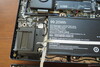 卸下 13 颗 Torx 螺钉后,即可松开底板(注意:机箱底座正面有用于照明的电线)。一个空的 M.2 插槽和两个空闲的内存组使升级选项成为可能。积极的一面笔记本电脑的散热系统采用蒸发腔技术。