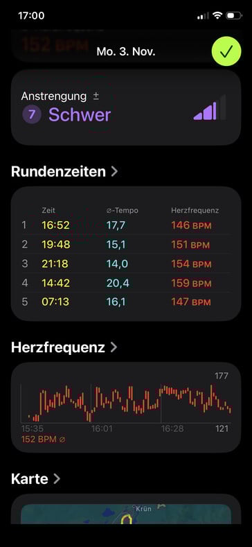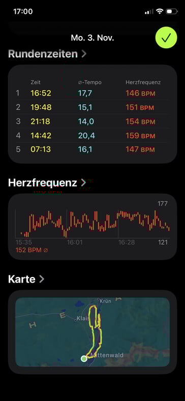 我们还在三个不同时间测量了活动时的心率。平均偏差仅为 0.4%,最大的一次偏差为每分钟两拍;三次测量中有两次完全相同。我们 的详细概述 智能手表测量精度的详细概述)。