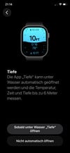 锻炼数据可直接在手表上或 iPhone 上的配套应用程序中查看。即使在明亮的环境下,运动时的可读性也非常出色。Watch 11 还继承了 Watch Ultra 的深度计。 手表 Ultra的深度计,当手表浸入水中时会自动激活。