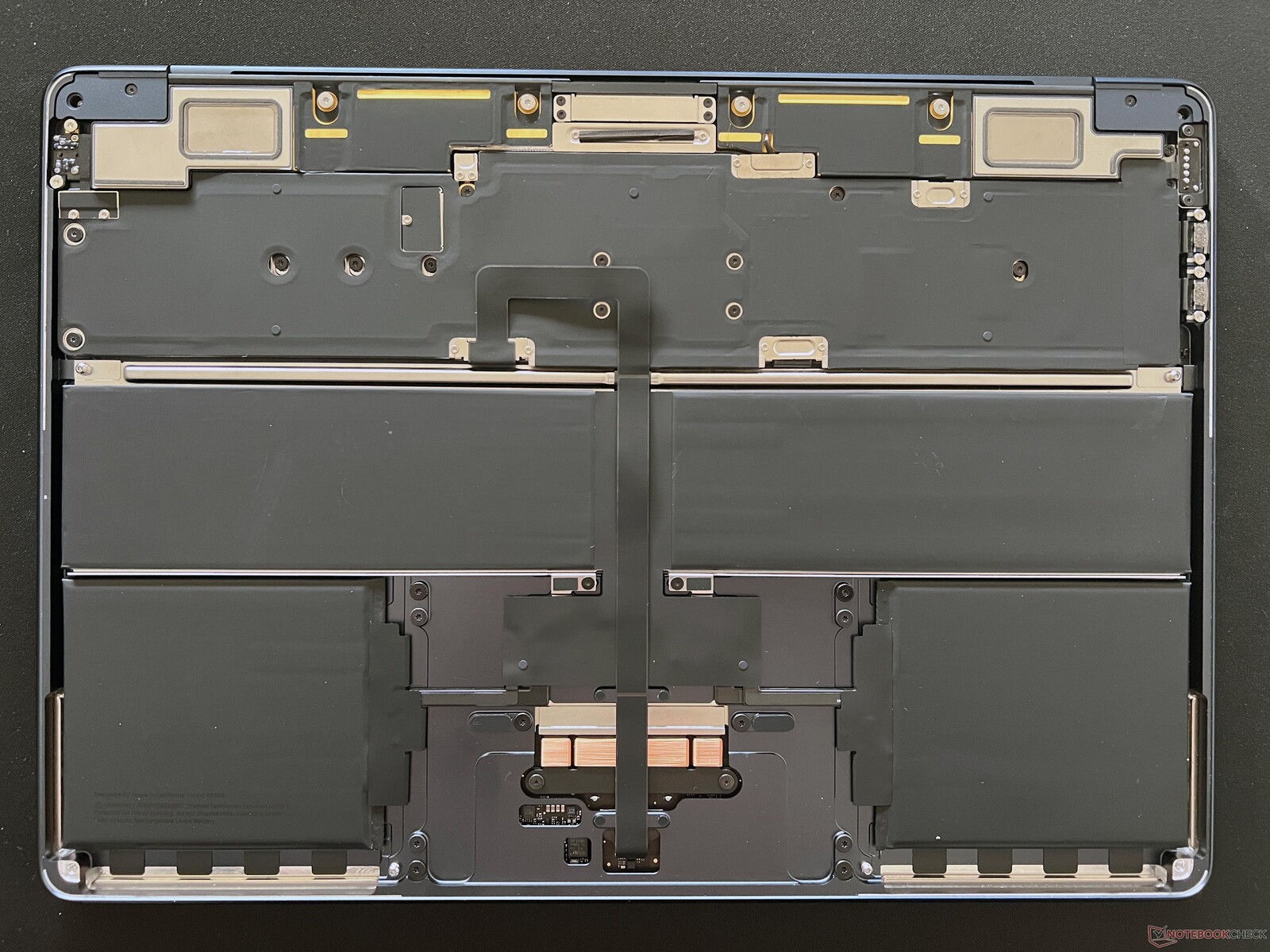随着 M2 代的发布,Apple 扩展了其著名的银色和太空灰配色,增加了两种新的选择:星光色和午夜色。深蓝色的 "午夜 "在产品照片上看起来特别漂亮,但很快就变成了指纹磁铁,几乎不可能保持表面清洁。随后,新的 M3 机型(午夜版)采用了阳极氧化涂层--与 MacBook Pro 14/16 的黑色版本相同--以帮助缓解这一问题。因此,指纹印的问题大大减少。与黑色 MBP 14 的情况一样,指纹痕迹在使用较长时间后确实会变得明显,但使用抹布清洁表面要容易得多。