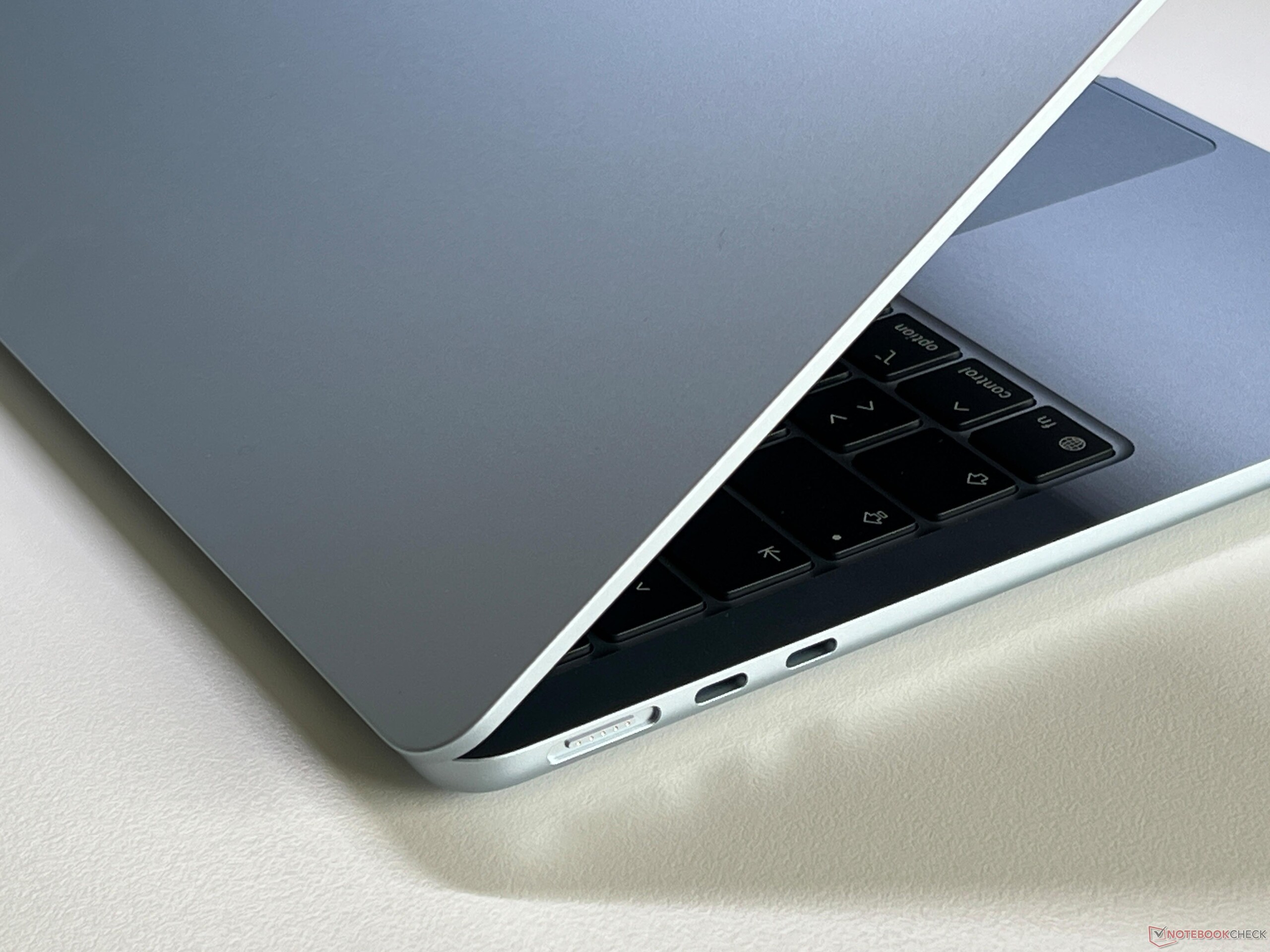 包括输入设备在内的机箱设计与上一代机型相同 前代机型尽管 Air 1.xx 千克的重量仍略高于某些竞争对手,但它仍然采用了非常纤薄的铝合金一体成型机身。Apple 修正了我们对 Wi-Fi 的批评,现在 Air 通过Apple 自己的 N1 芯片支持最新的 Wi-Fi 7,包括蓝牙 6.0。不过,在我们的标准化 Wi-Fi 测试中,Air 的表现并不完全一致,结果可能会更好,但对日常使用的影响可以忽略不计。以下图片来自上一代机型。