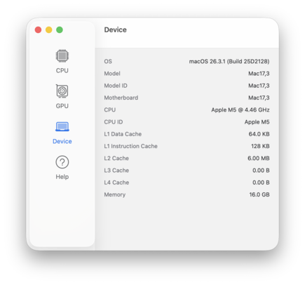| Apple MacBook Air 13 M5 M5 10-Core, M5 GPU, Apple SSD AP0512Z, IPS, 2560x1664, 13.6" | Apple MacBook Air 13 M4 Entry M4 10-Core, M4 8-Core GPU, Apple SSD AP0256Z, IPS, 2560x1664, 13.6" | MSI Prestige 13 AI Plus Evo A2VMG Core Ultra 7 258V, Arc 140V, , OLED, 2880x1800, 13.3" | Dell XPS 13 9350 Core Ultra 7 256V, Arc 140V, Micron 2550 512GB, IPS, 1920x1200, 13.4" | Microsoft Surface Laptop 7 13.8 Copilot+ SD X Elite X1E-80-100, Adreno X1-85 3.8 TFLOPS, Samsung MZ9L4512HBLU-00BMV, IPS, 2304x1536, 13.8" | Average Apple M5 GPU | Average of class Subnotebook | |