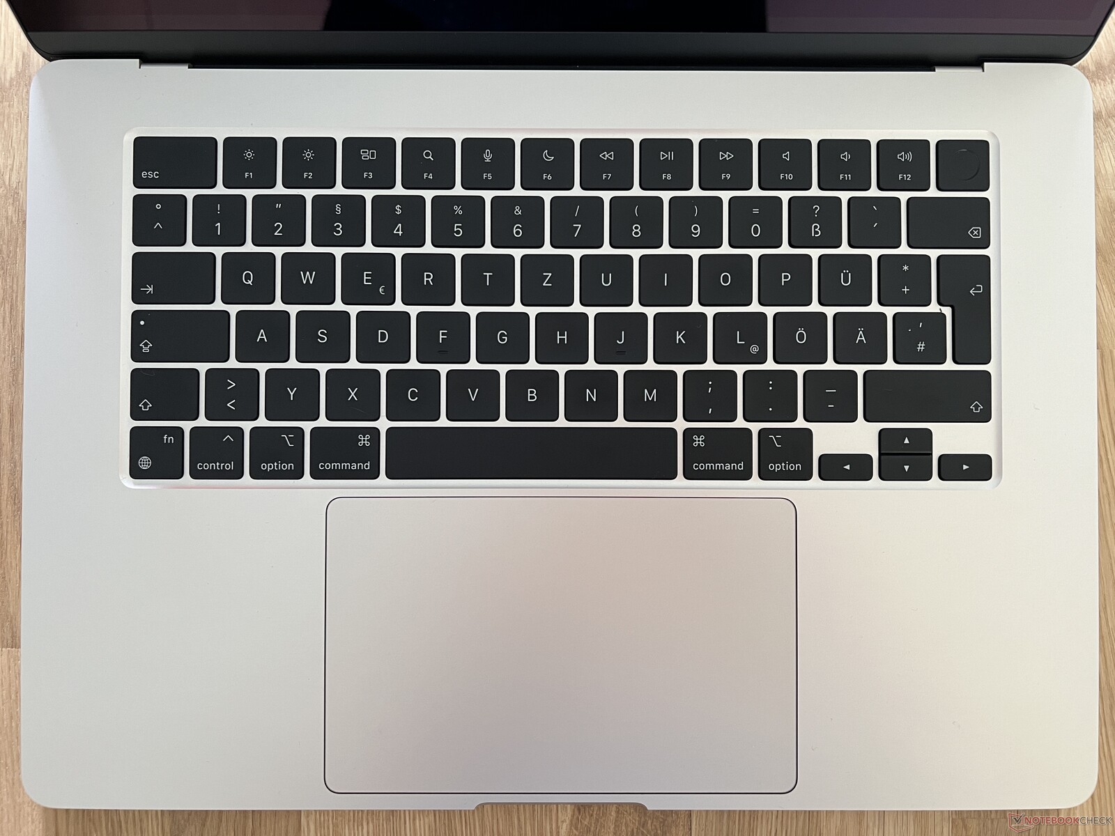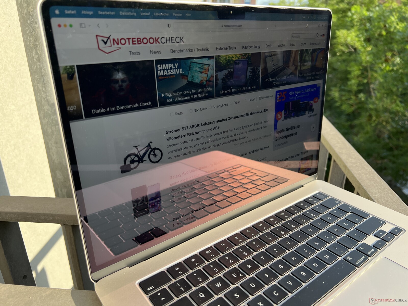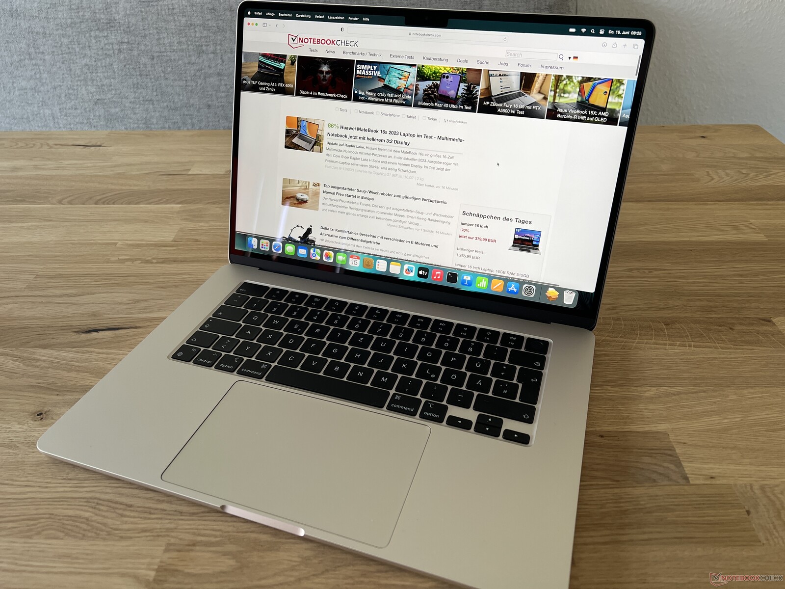 15英寸机型的外壳看起来更平坦,但Air 15绝不是一个超过1.5公斤的轻型产品。显示屏非常好,质量也可与较小的Air媲美。当然,与MacBook Pro相比有一些缺点,但没有PWM,这对一些用户来说当然是一个重要因素。扬声器有两个额外的模块,总体上要好一点,但仍然没有像 MacBook Pro 16.另一方面,Apple ,与较小的兄弟姐妹相比,电池寿命也得到了改善。