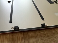 显示屏的边缘相对较窄,尽管有些Windows设备的边缘甚至更薄。当然,上部区域的网络摄像头的凹槽仍然很明显,这没有任何缺点,至少在功能上没有。然而,我们仍然认为它看起来不是特别好,但这自然是一个品味问题。底座单元的前缘相当尖锐,但由于底座本身很薄,这不会割伤手腕。