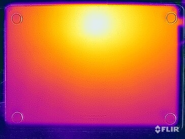 (+) The palmrests and touchpad are reaching skin temperature as a maximum (34.5 °C / 94.1 F) and are therefore not hot.