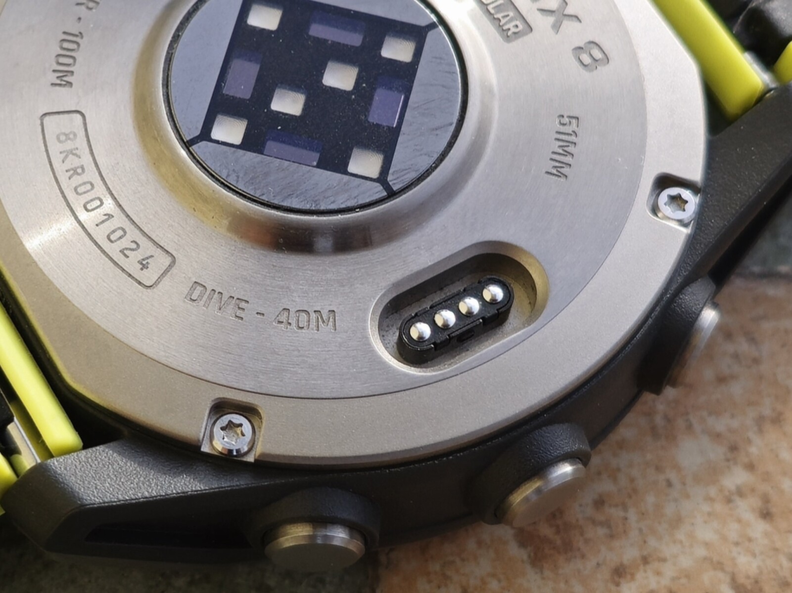 由于续航时间很长,Fenix 8 Solar 的充电时间并不长。不过,这也是一个不利因素,因为将电池电量从 22% 充至 100%大约需要 1.5 小时。在我们看来,使用插头连接的充电系统也不理想。对于如此昂贵的手表来说,无线充电应该是可行的。不过,制造商在其所有表款中都安装了这种连接方式,至少看起来是可持续的。