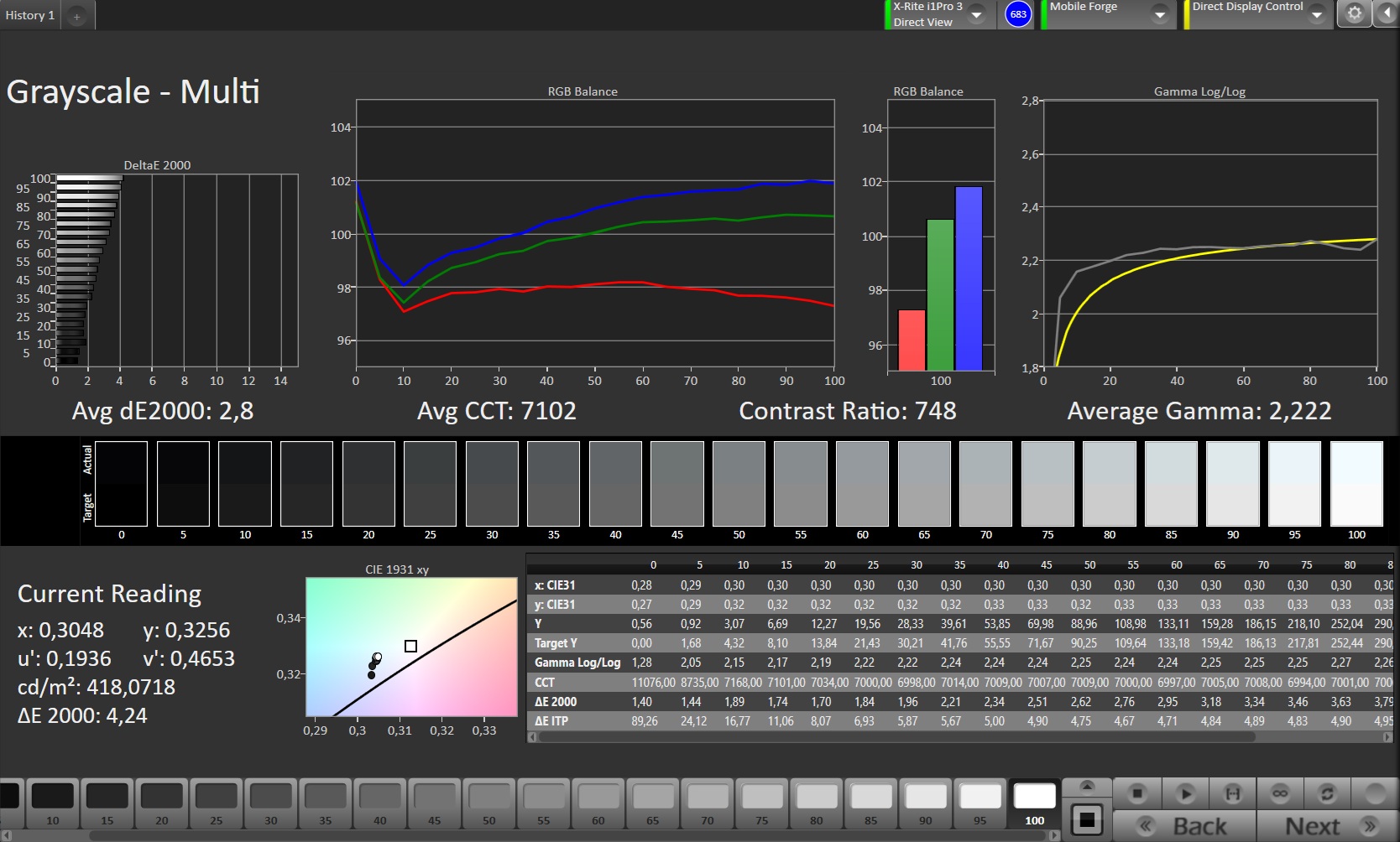 ΔE Greyscale Calman: 2.8 | ∀{0.09-98 Ø4.99}