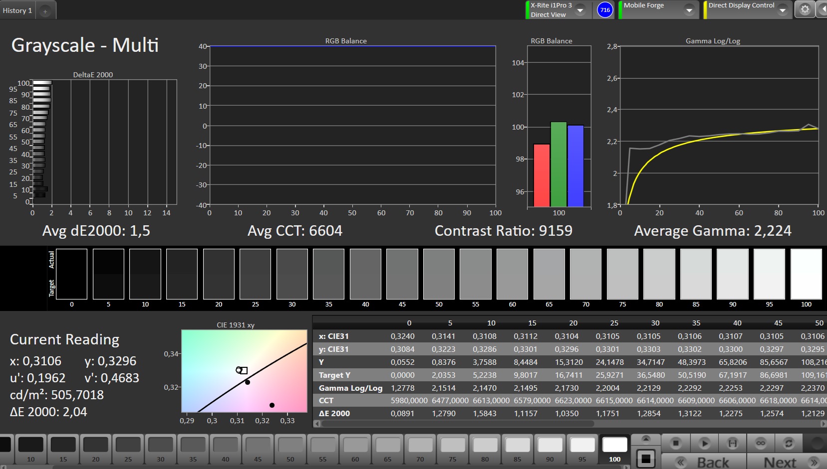 ΔE Greyscale Calman: 1.5 | ∀{0.09-98 Ø5}