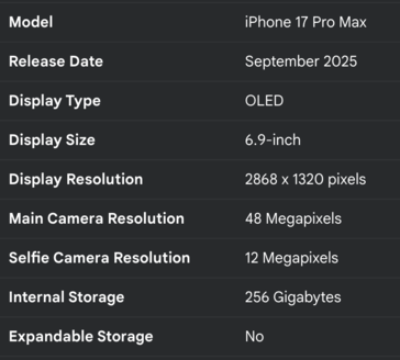 最后,iPhone 17 Air 似乎将标配 128 GB 存储空间。这并不令人震惊,因为即使是 iPhone 16 Pro也开始配备 128 GB 存储空间,这并不令人震惊,但确实表明它的售价可能低于 Pro 机型(999 美元)。